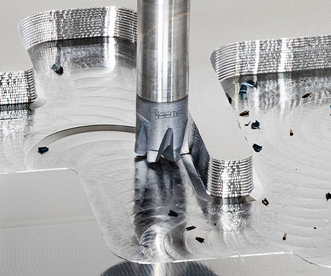 The assortment of MULTI-MASTER's standard-line solid carbide heads is extensive, encompassing a wide variety of shapes, including cylindrical, tapered, ball-nose, disc-type, toroidal, and others, within a nominal diameter range of 5–32 mm. While it may seem that this diversity fully satisfies design requirements, ISCAR continues to expand the line with new products each year. Among the latest additions are six-flute high-feed milling (HFM) heads for efficient roughing, capable of machining steels hardened up to HRC 65 (Fig. 1); six-flute dovetail groove milling heads with cutting edge angles of 120° and 135°; and four-flute, 32-mm-diameter heads for milling aluminum and other ISO N materials, featuring an anti-chatter design, sharp cutting edge, and polished rake face. The increased number of flutes is intended to promote productive machining combined with rational and sustainable utilization of carbide material.